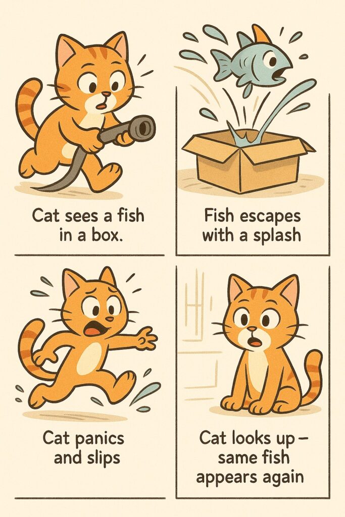 - Example: A cat chases a fish β loses it β sees the same fish again