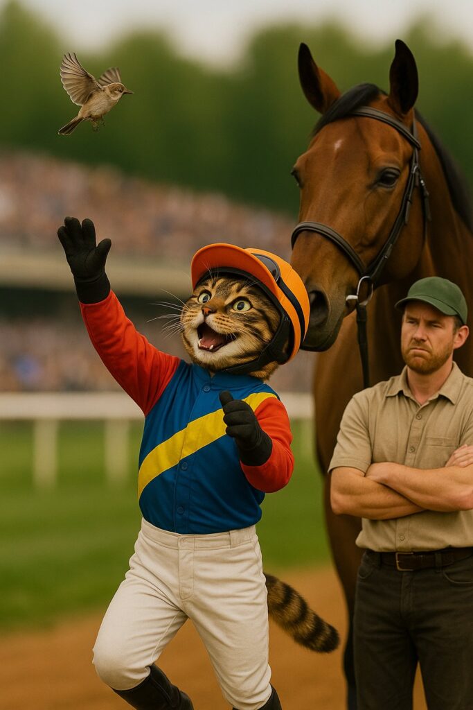 Jockey Cat Jumps Off Horse to Chase a Bird! π±ππ¦