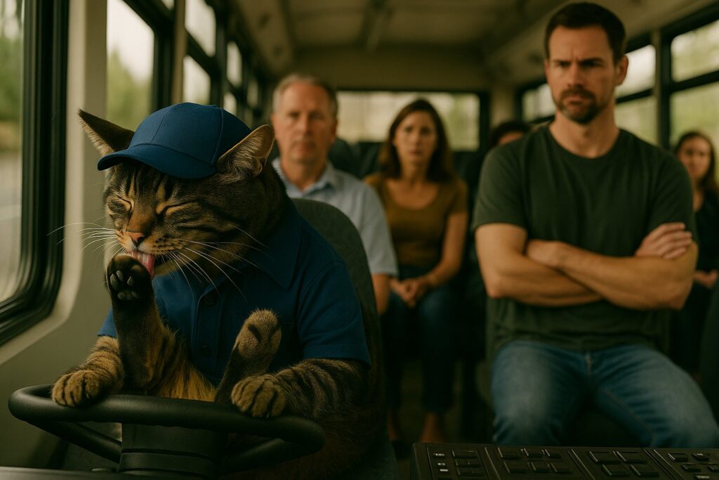 Bus Driver Cat Too Busy Grooming to Drive?! 🐱🚌