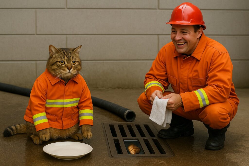 Firefighter Cat Loses His Fish in a Drain! ππ¦ (Funny Cat Skit)