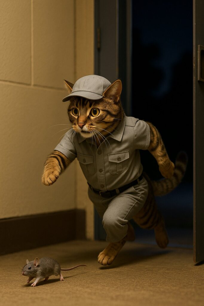 Security Guard Cat’s Night Patrol Turns into a Mouse Chase! 🐱🚨🐭