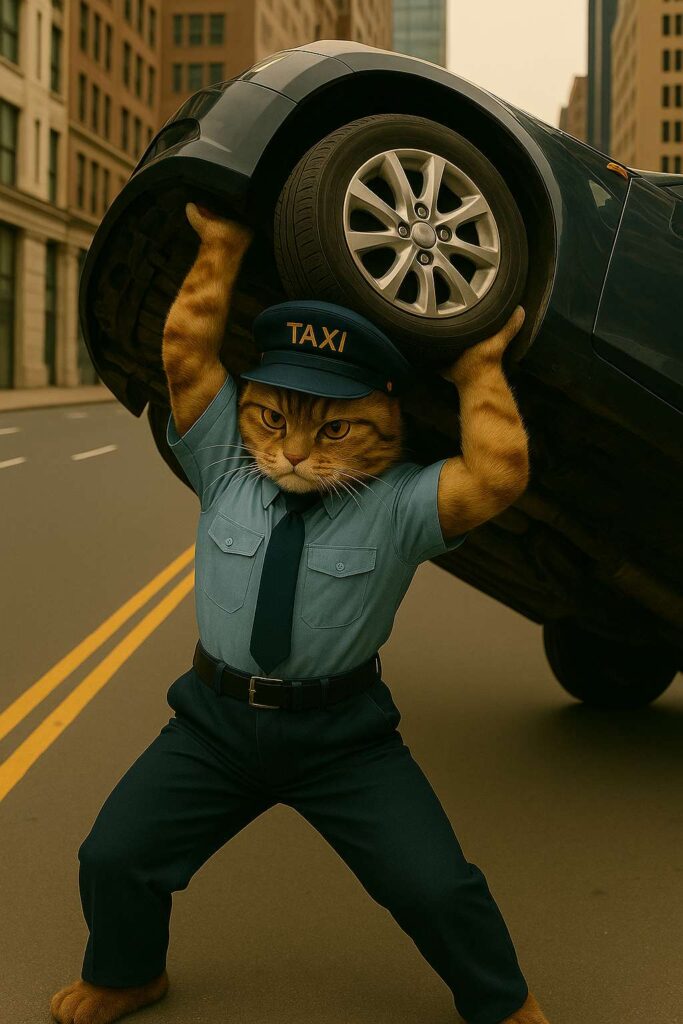 Heroic Taxi Cat Lifts Car to Save a Passenger! 🚕🐱