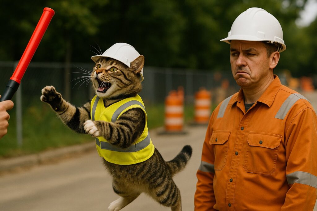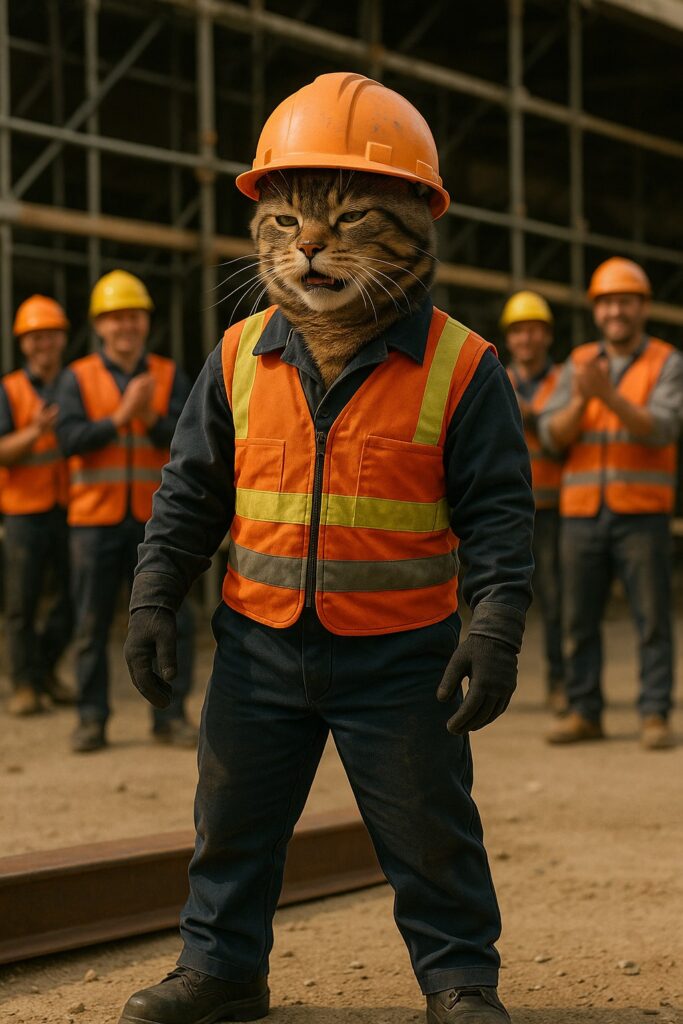 Construction Worker Cat Stops a Falling Beam and Saves the Crew!