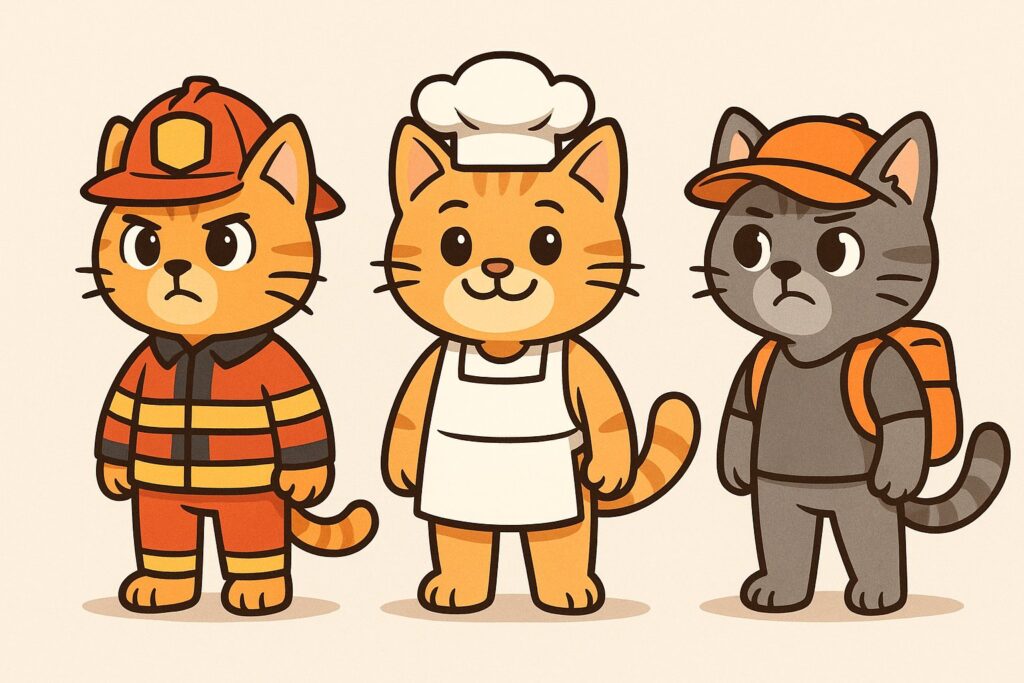 A firefighter cat without a helmet looks like just a cat. A tiny helmet instantly conveys role and story. Start with clear signals.