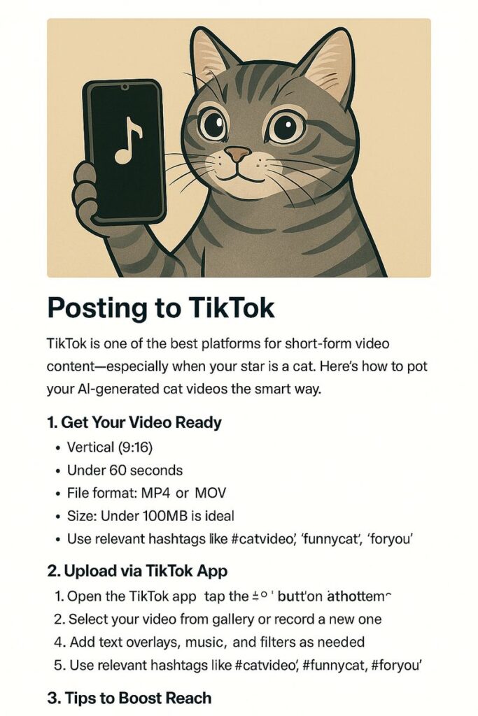 TikTok is one of the best platforms for short-form video content—especially when your star is a cat. Here’s how to post your AI-generated cat videos the smart way.